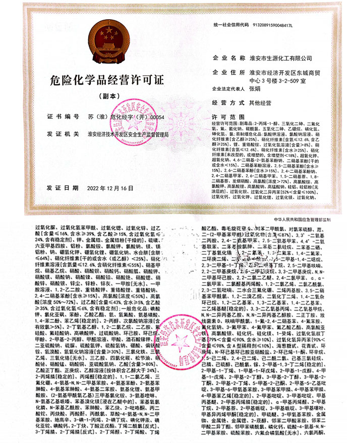 非藥品類易制毒化學(xué)品經(jīng)營備案證明(二類)